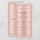Este cardápio glamouroso de ouro rosa é perfeito para o seu elegante decoro de casamento. A base metálica falsa é enquadrada em cima e em baixo com damasco, e o título está na tipografia moderna da escrita. Na parte de trás está um monograma elegante.