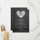 Estes cartões de cardápio apresentam uma árvore romântica pendurada, e em breve serão marido e mulher, que está gravada em forma de coração. O fundo do efeito de quadro negro torna esses menus perfeitos para qualquer casal planejando um casamento moderno chic. Esses menus podem ser facilmente personalizados para atender às necessidades do seu partido e também funcionarão como excelentes para noivados, chás de panela, comemorações de aniversário e muito, muito mais.
