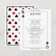 Rei e rainha de espadas tocando cartazes no menu de recepção de casamento. Personalize-o com os detalhes do evento. Excelente para a celebração do tema Las Vegas / pôquer.