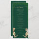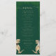 Engraçado Menu de Casamento do Dinossauro T-Rex Bride & Groom com o Menu de recepção de casamento Personalizada Jurássico-Tema de Aquaura Eucalyptus com Aquarela Curvatura Costumada do Dinossauro Adicione uma reviravolta pré-histórica à sua mesa de casamento com este engraçado menu de casamento com dinossauros, com uma ilustração encantadora de dino T-Rex e noiva cercada rodeada por um eucalipto elegante. Este cardápio único ao estilo Jurássico combina design com elegância botânica, fazer perfeito para casais que querem algo original e inesquecível. A design mostra trabalho de arte de dinossauro detalhado e aquoso em tons castanhos quentes, aliado a folhas de eucalipto verde macio em um rico fundo verde escuro para um aspecto na moda romântico, porém fresco e natural. O layout é fácil de personalizar com seus nomes, data de casamento e detalhes personalizados do menu de casamento, todos apresentados em uma combinação de na moda de roteiro moderno e tipografia limpa. Ideal para decoração de casamento de dinossauros, casamentos estranhos ao ar livre ou celebrações rústicas inspiradas na natureza, este menu de casamento impresso é divertido e sofisticado. É um começo de conversa de excelente e o toque perfeito para suas mesas de recepção. Com trabalho de arte exclusiva da ilustradora Catherine Sweetman, este cardápio personalizado de casamento de dinossauros é feito para casais que querem mostrar sua personalidade, humor e amor por todas as coisas dino enquanto mantêm seu casamento maravilhosamente estirado.