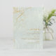 Um fundo de aquarela em tons de verde sábio é tocado por um abstrato de linhas de ouro finas e efeitos de iluminação reluzentes para criar as peças desta bela suíte de casamento. O cartão 'Menu' do casamento mostrado aqui também apresenta uma caligrafia elegante e um layout fora do centro para atração visual. Adicione facilmente suas próprias iniciais, data do casamento e seleções de menu usando a modelo fornecida. Procure ID867 para ver outras peças e opções de cores para este conjunto.