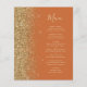 A borda esquerda deste elegante menu de casamento moderno apresenta uma borda falsa dourada. O texto personalizável combina um script de escrita manual branco de cor dourada e fontes de impressão em um fundo laranja queimado. O verso apresenta uma design de cor laranja queimada e dourada.