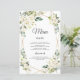 Design charmoso com uma falso estrutura dourada adornada com flores de creme branco de cor d'água, buquês de folhas verdes; sobre fundo branco. Use a ferramenta Personalizar para adicionar suas informações. Itens correspondentes podem ser encontrados na minha Coleção de Sangue de Flores Brancas.