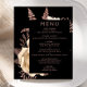 Este elegante menu de casamento, humorístico, apresenta um buquê floral romântico, luxuoso, no marfim, com folha de ouro rosa e folhagem brilhante num fundo negro. Personalize o texto cor-de-rosa rosa em fontes na moda num retângulo preto. A parte traseira da placa é preta e sólida.