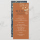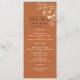 Programa de casamento boêmico, moderno, elegante, russo, terracota e azul-marinho, com um sofisticado cadastro floral dourado dourado dourado dourado e um roteiro de caligrafia de tendências.