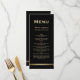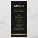 Um moderno cardápio de casamento preto e ouro.