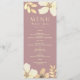 Menu de casamento moderno, elegante e floral de rosa com flores de ouro a aquarelas.