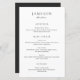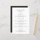 Menu de casamento elegante com um design simples e clássico com os detalhes do seu evento em fontes de serifa tradicionais e de script elegante. Use a modelo para adicionar cada nome de convidado.