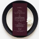 Traga um toque refinado para sua recepção com este cardápio de casamento burgundy, projetado em uma estética de dinheiro eterno velho. O fundo tinto-de-vinho com tipografia elegante o torna perfeito para o outono e casamentos no inverno, acrescentando um olhar luxuoso e sofisticado às suas mesas jantas. Uma bela maneira de guiar os convidados através dos cursos da noite em estilo.