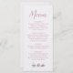 Uma maneira adorável de guiar seus convidados através da refeição, este cartão de menu de casamento apresenta um design floral limpo e fácil de ler. Ele pode ser personalizado com o menu de cheio — de início a sobremesa — para que seus convidados saibam o que esperar. No verso, as suas iniciais e a data do casamento são impressas como uma doce e simples manutenção. Quer você esteja planejando um janto em prato ou uma distribuição no estilo de buffet, este cartão adiciona um toque de conclusão cuidadoso a cada configuração de lugar. Perfeito para casais que querem um pequeno detalhe que se sente pessoal sem ser exagerado.