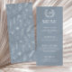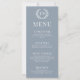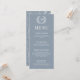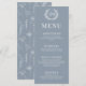 Melhore o encanto da sua recepção de casamento com esses cartões de cardápio azuis sofisticados e na moda. Decorados com delicadas flores brancas e exibindo uma coroa floral eterno embelezada com o monograma da noiva e do noivo, esses cartões exudem um ar de elegância e refinamento. Descubra os cartões de menu ideais para complementar sua celebração inesquecível.