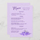 Menu de Casamento de Floral de Aquarela elegante e minimalista de lavanda