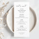 Menu de casamento personalizado com elegante caligrafia manual com design moderno simples.