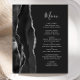 A borda esquerda deste elegante cardápio moderno de casamento apresenta uma coloração aquosa preta, aparada com falso brilho prateado. O texto personalizável combina o script de escrita manual de cinzas prateadas e as fontes de impressão em um fundo fora do preto. O verso apresenta um design de agata preto e prateado correspondente.