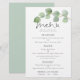 Menu de Casamento Eucalyptus com Aquarela Moderna