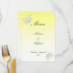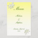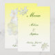 Este lindo menu de casamento floral amarelo brilha com a alegria da ocasião. A frente é decorada com daffodils brancos colocados em um ouro amarelo ensolarado. Um buquê lindo de narcisos, narcisos e lilases brancos enfeita as costas. Todo o texto pode ser personalizado para se adequar à sua ocasião individual.