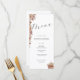 Este elegante design de cardápio de casamento apresenta lindas flores do outono com grama-palma, flores secas e lanças de palma, acabadas com a tipografia clássica da caligrafia. Um design de cardápio clássico para vestir suas mesas lindamente e combinar com seu tema de casamento de outono através de suas ideias de decoração de casamento.
