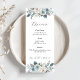 Menu de Casamento Floral Azul Personalizado (4"x9"