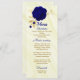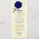 lindas flores azuis reais e ouro deixam um belo cardápio de casamento.