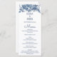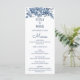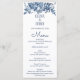 Para o janto especial de casamento! O azul clássico e o trabalho de arte branco de aquarela floral e borboleta decoram a parte superior deste cartão de menu. O reverso é branco com duas borboletas azuis. Os itens de menu são fáceis de personalizar usando os modelos de texto e o menu editar. Elegante, porém simples e moderno. Arte original e design de Tuzi Williams.