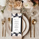 Elevem sua recepção de casamento com nosso Elegante Menu de Casamento Floral Branco e Preto. Este menu lindamente trabalhado apresenta designs florais pretos complexos colocados sobre um fundo branco nítido, criando um aspecto eterno e sofisticado que aprimora qualquer configuração de mesa. Principais recursos: Design Floral Refinado: os delicados sotaques florais pretos trazem um toque elegante e artístico a cada cardápio, acrescentando sofisticação à decoração do casamento. Qualidade Premium: Impresso em estoque de cartão de alta qualidade, este menu tem uma sensação e durabilidade luxuosas, garantindo que ele se mantém bem durante a recepção. Layout do Menu Claro: Organizado com clareza em mente, o menu fornece amplo espaço para sua cozinha do dia de casamento, de aperitivos a sobremesas, dando aos convidados uma experiência perfeita de jantar. Opções personalizáveis: personalize o menu com sua escolha de cursos, data de casamento e quaisquer outros toques especiais. Nossos modelos fáceis de usar permitem que você design um menu que complementa seu estilo exclusivo. Tamanho perfeito para as configurações de Mesa: medindo 4 x 9 polegadas, este menu é ideal para colocação na configuração de mesa de cada convidado, fazer-o como uma parte adorável do seu decoro de recepção. Por Que Escolher Este Menu De Casamento? Nosso Elegante Menu de Casamento Floral Negro e Branco é perfeito para casais que buscam um olhar refinado e coeso para sua recepção de casamento. Com seu design floral chico e layout personalizável, este menu define o tom para uma experiência elegante de jantar que seus convidados lembrarão. Adicione um toque de sofisticação à sua recepção de casamento com este belo menu floral. Peça o seu hoje e complete o visual do seu dia especial!