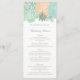 Elegante cardápio de casamento floral com rosas de pêssego, rosas de menta, flores azuis e tipografia moderna e clássica. Alguns elementos por Fish Scraps. ***OBSERVE que, se você alterar a fonte ou o tamanho da fonte, ela pode alterar a forma como o seu convite impressão. Ele vai impressão como você vê no seu monitor. Não verei seu cartão assim que você o solicitar, e o Zazzle NÃO editará nada (digitar, alinhamento, etc.).