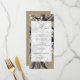 Parte de uma coleção de artigos de papelaria de casamento. Este cartão de cardápio simples, mas sofisticado, apresenta tipografia com sotaques de caligrafia moderna com flores rústicas vintage.