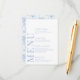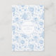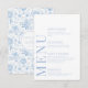 Melhore sua porcelana azul eterno Chinoiserie inspirou a celebração do casamento com um cartão de menu elegante. Mostrando um padrão delicado de flores brancas e azuis-claras, este design refinado é complementado por um toque personalizado — a noiva e o monograma nobre no verso, criando um elemento memorável e distintivo para seu dia especial.