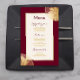 Um elegante, porém moderno, design com flores luminosas de folha de ouro falsas em cantos opostos deste menu de casamento. Um fundo burgundy com cor de texto correspondente para os títulos. Simples mas na moda com espaço suficiente para você listar suas opções de menu de casamento. Fácil de personalizar, mas entre em contato com o designer se precisar de ajuda para personalizar este design.