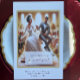 Adorável cardápio floral de casamento que você pode adicionar seus próprios nomes e cardápio para adicionar esse toque especial ao dia do seu casamento. As cores são molhadas a branco cremoso em ouro. O fundo é uma bela noiva afro-americana e noiva saltando sobre a vassoura.