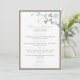 Menu de Casamento Floral Moderno - Azul-Aqua