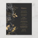 Menu de Casamento Floral Preto-Dourado Escuro