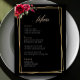 Um elegante cardápio vermelho escuro e cardápio preto de casamento com flores bonitas e folhas verdes. Uma fusão encantadora de elegância e charme gótico. Estes belos convites estão em tons robustos de preto e vermelho. A caligrafia é elegante e chique e pode ser facilmente personalizada. Convites românticos e modernos de casamento floral com cores clássicas que nunca saem do estilo.