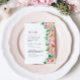 Menu de Casamento Floral Púrpura e Rosa Elegante