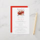 Menu de Casamento Foliar de Florestas Vermelhas. Um preço orçamentário de 5,5" x 8,5", em uma elegante estoque LINEN de 110 lb - para uma sensação de luxo pelo valor do excelente, isso é perfeito para menus, além de convites e programas, etc. Este alternativo de tamanho de orçamento também está disponível em outras opções de papel. O estoque do cartão SEMI-GLOSS de 110 lb tem aproximadamente a mesma espessura do cartão postal, portanto também funciona bem para convites. O papel FELT de 100 lbs é colorido por buff, NÃO branco, então adiciona um toque rústico. O estoque de papel MATTE de 80 lb é branco brilhante, para impressão nítida, excelente para seus menus e programas, enquanto o papel SATIN de 80 lb é fino e leve, ideal para gabinetes. NOTE QUE OS ENVELOPES OPCIONAIS SÃO UM POUCO MAIORES EM TAMANHO A 6,75" x 9" aproximadamente. Um buquê de florais coloridos festivos está no topo e personaliza facilmente o texto abaixo. Um fundo vermelho coordenado está atrás. Você também pode alterar o estilo e as cores da fonte e as cores de fundo na frente e na parte traseira, se desejar, por meio da opção Clique para Personalizar mais.
