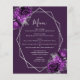Menu de Casamento Geométrico de Prata Floral Púrpu