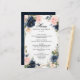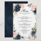 Menu de casamento geométrico azul-escuro marinho com elegante buquê de azul-marinho, azul-real, branco, rosa-esmalte e folhas verdes-sábio de eucalipto e elegante quadro neutro geométrico de brilho. Entre em contato comigo para obter ajuda sobre a personalização ou se você precisar de outro produto com este design.