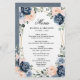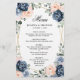 Menu de casamentos geométricos florais azuis empoeirado com buquês elegantes de marinho/Azul empoeirado, branco, branco, rosa de pêssego e verde-sábio, folhas de eucalipto e elegante quadro geométrico neutro. Entre em contato comigo para obter ajuda sobre a personalização ou se você precisar de outro produto com este design.