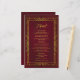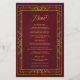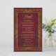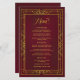 O menu de casamento apresenta uma imagem geométrica antiga do ouro, um fundo burgundy e uma elegante escrita de ouro antiga.