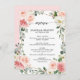 Elegante Menu de casamento botânico floral, cor-de-rosa-pincel/primavera de pêssego, com um buquê de rosas de aquarela pastel macio, pénicas e hipangas em tons de rosa-pincel, pêssego e creme com folhas botânicas verdes e folhas de eucalipto com estrutura geométrica de ouro. Por favor, encontre mais designs e variações na minha loja de "blisswedingpaperie". E fique à vontade para me contactar para mais personalizações ou itens correspondentes.