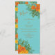Menu de Casamento Laranja & Teal Aqua Peony & Rosa
