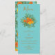 Menu de Casamento Laranja & Teal Aqua Peony & Rosa