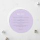 Adicione um toque de elegância moderna à sua mesa de casamento com este Menu de Casamento Lilac da Lavanda Moderna Redonda. Apresentando um fundo lilac roxo lavanda e uma delicada estrutura de linha branca, este cartão de menu redondo oferece um design limpo e minimalista que complementa qualquer estilo de casamento, quer você esteja planejando uma festa de jardim de primavera, uma celebração de praia de verão, uma reunião confortável de outono, ou um casamento no inverno chic. A paleta e o design de cores neutras facilita a combinação com uma grande variedade de artigos de papelaria e decoração de casamento, especialmente quando comparados a outros itens na mesma coleção. Totalmente personalizável on-line, você pode atualizar facilmente o texto, as fontes e o layout para ajustado do seu dia especial, sem ferramentas de design ou sem necessidade de experiência. Faça com que a configuração de lugar de cada convidado se sinta cuidadosamente curada enquanto mantém sua apresentação de menu simples, na moda e coesa.