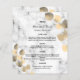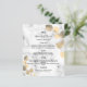 Personalize e adicione seus nomes, data e o menu de casamento. Impressão de pedra de mármore como fundo, decorado com ramos de eucalipto dourados.