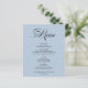 Menu de Casamento Minimalista Azul Dusty Elegante