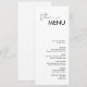Design preto e branco minimalista moderno para o menu de casamento personalizado. Personalize-o para si mesmo!