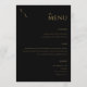 Menu moderno de casamento com design de tipografia elegante minimalista em preto e dourado.