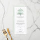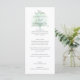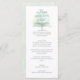 Menu de casamento de carvalho aquoso leve e leitoso, projetado para elogiar a coleção de casamentos de "árvore nebulosa". Cor sutil e serena em verde. O design é acentuado por uma aquarela em verde.
