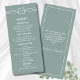 Este Cartão de Menu de Casamento Verde Moderno, personalizado, apresenta um design chic, minimalista, perfeito para uma celebração contemporânea de casamento. Com uma tipografia branca elegante e uma letra de escrita graciosa, ela exibe lindamente o monograma do casal. Linhas limpas e um senso verde macio criam um aspecto eterno, simples e clássico que complementará qualquer estética moderna do casamento. Estes cartões de menu são a escolha ideal para casais que procuram um toque sofisticado, mas subestimado, para o seu dia especial.
