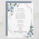 Menu Casamento de Aquarela | Os rosas de cor azul-poeirenta rodeiam uma armação de ouro do tipo terrário geométrico com vegetação de sábio. O reverso é um azul empoeirado complementar. Personalizar texto, estilo de fonte, cor e tamanho. Arte original criada para o BarefootBride™ por © WhimsicalArtwork™ - Esta é parte de um Conjunto completo de Artes de Casamento, chá de fraldas e outros artigos de papelaria para eventos semelhantes.